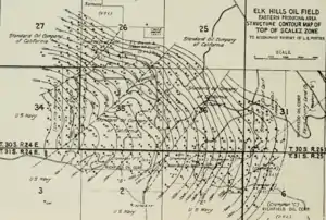 - ↑ Porter, Lawrence (1943). Elk Hills Oil Field (U.S. Naval Petroleum Reserve No. 1), in Geologic Formations and economic development of the Oil and Gas Fields of California. San Francisco: State of California Dept. of Natural Resources Division of Mines, Bulletin 118. p. 512.