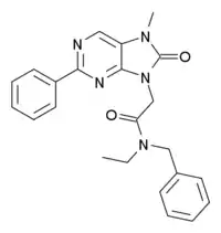 Emapunil (AC-5216, XBD-173) is an anxiolytic drug which acts as a selective agonist at the peripheral benzodiazepine receptor, also known as the mitochondrial 18 kDa translocator protein or TSPO.[1][2] This protein has multiple functions, among which is regulation of steroidogenesis,[3][4] particularly the production of neuroactive steroids such as allopregnanolone in the brain.[5][6][7] In both animal and human trials, emapunil produced fast acting anxiolytic and anti-panic effects, without producing sedation or withdrawal symptoms following cessation of use.[8][9] Emapunil is also used in its 11C radiolabelled form to map the distribution of TSPO receptors in the brain.[10][11]