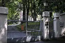 In 1956 the château was rented by the Soviet Union to allow their diplomatic mission in Luxembourg to open. During the Hungarian Revolution of 1956 the mission was attacked by a group of demonstrators, and the ground floor of the château sustained considerable damage.[2] On 5 June 1973 the château and an adjacent 2.8 hectare plot of land was sold to the Embassy of the Soviet Union for 8.5 million francs.[1][2][3]