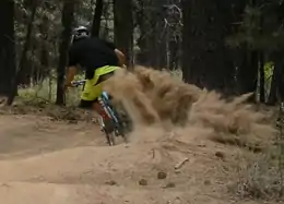 A rider hitting a berm during a race in the Oregon Enduro Series.[1]