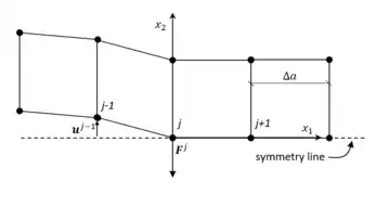 A necessary condition for the MCCI method is uniform element length along the crack face in the direction. Additionally, this method requires sufficient discretization such that over the length of one element stress fields are self-similar. This implies that as the crack propagates. Below are examples of the MCCI method with two types of common finite elements.