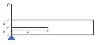 ![]() Double cantilever beam (DCB) specimen under tensile load. Consider the crack in the DCB specimen shown in the figure. The nonzero stress and displacement components are given by [3] as The crack closure integral for this linearly elastic material, assuming the crack grows straight ahead, is Consider rescaling the integral using for where one computes the simpler integral to be leaving the energy release rate as the expected relation. In this case, it is not straightforward to obtain directly from the loading and geometry of the problem, but since the crack grows straight ahead and the material is linearly elastic, the energy release rate here should be the same as the energy release rate calculated using the other methods. This allows one to indirectly retrieve the stress intensity factor for this problem as |
