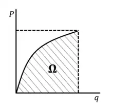 The figure on the right shows the plot of an external force vs. the load-point displacement , in which the area under the curve is the strain energy. The white area between the curve and the -axis is referred to as the complementary energy. In the case of a linearly-elastic material, is a straight line and the strain energy is equal to the complementary energy.