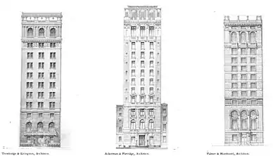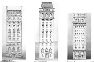 - ↑ These firms were Ackerman & Partridge, Carrère and Hastings, Clinton and Russell, Lord and Hewlett, Palmer & Hornbostel, and Whitfield & King.[19][68][74]