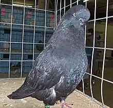 The English Long-faced Tumbler[1] is a breed of fancy pigeon developed over many years of selective breeding.[3] English Long-faced Tumblers, along with other varieties of domesticated pigeons, are all descendants of the rock dove (Columba livia).