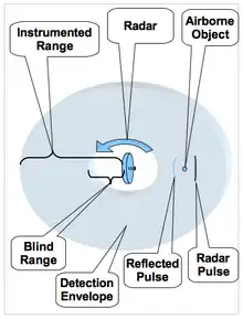 The instrumented range is the maximum distance at which a radar return may be displayed. This does not indicate an object will be detected at this range, but merely that beyond this range no returns will be displayed at all.[4]