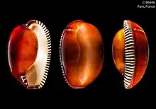 - ↑ Fehse, D (2001). "Beiträge zur Kenntnis der Ovulidae (Mollusca: Cypraeoidea). VIII. Einleitung zur Familie sowie Katalog, Taxonomie und Bibliographie und Bemerkungen zu verwandten Gruppen". Acta Conchyliorum. 5.
