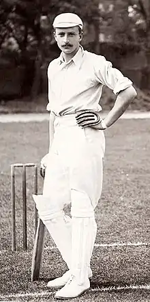 At school Mann was described as "a good player and a good captain"[8] and at University he played for the Cambridge University side from 1902 to 1905, captaining it in his final season.[5][9] He won his first cricket Blue in 1903 and played in three University matches from 1903 to 1905.[10] His form as a batsman was generally steady and it was not until his final season at Cambridge that he stood out, topping the Cambridge batting averages with 758 runs at an average of 46.05 runs per innings, including scoring both of his first-class centuries. He captained the side to victory in the university match, although he made scores of 14 and 0 in the match.[11]