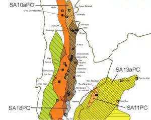 {{cite journal}}: CS1 maint: multiple names: authors list (link) - ↑ Yacimientos Metaliferos de Chile, Ruiz Fuller & Peebles, Santiago 1988