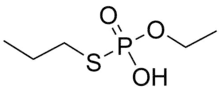 Ethoprophos (or ethoprop) is an organophosphate ester with the formula C8H19O2PS2.[1] It is a clear yellow to colourless liquid that has a characteristic mercaptan-like odour. It is used as an insecticide and nematicide[2] and it is an acetylcholinesterase inhibitor.[3]