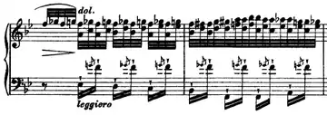Liszt's original idea was to write 24 études, one in each of the 24 major and minor keys. He completed only half of this project, using the neutral and flat key signatures. In 1897–1905 the Russian composer Sergei Lyapunov wrote his own set of Douze études d'exécution transcendante, Op. 11, continuing Liszt's cycle through the keys that Liszt had not used, namely the sharp keys, to "complete" the set of 24.[6] Lyapunov's set of études was dedicated to the memory of Liszt, and bore titles as Liszt's set had done, with the final étude being entitled Élégie en mémoire de Franz Liszt.
