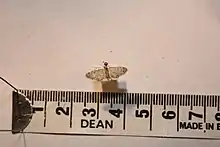 Eupithecia minusculata is a moth in the family Geometridae. It is a widespread species, ranging from Spain through North Africa (Algeria, Tunisia and Libya) and the Middle East to Mongolia. In the north, the range extends to the lower part of the River Volga. In Central Asia, it is found in Turkmenistan, Uzbekistan, Tajikistan, Afghanistan, southern Kazakhstan, and north-western China (Xinjiang).[2] The habitat consists of deserts or xerophilous areas.