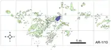 In 2011, the remains of two partial skeletons of an ankylosaur were discovered from the Fundación Conjunto Paleontológico of Teruel-Dinópolis locality AR-1 of the lower, located east of Ariño, in the northern Teruel Province in the Community of Aragón. The paratype of Europelta was collected 200 meters laterally from the holotype in the same bed. The site dates to the early Albian stage of the late Early Cretaceous, based on an analysis of the palynomorphs, ostracods and charophytes (calcareous nannofossils). The bonebed that the two skeletons were obtained from was located tens of meters underground preceding mining operations in the Santa María coal mine and by the end of 2012 the areal distributions of 101 vertebrate concentrations were documented that consisted of dinosaur, turtle, crocodilian and fish skeletons. The mineral Pyrite is common within the bones and in the bonebeds of the two associated skeletons, which is also common in the plant debris beds in the older Wessex Formation on the Isle of Wight. When the bones were exposed to the surface, they started to degrade due to the pyrite as indicated by the appearance of fine, powdery to crystalline gypsum coating bones and teeth, and by the shattering of some bones and teeth with internal gypsum formation.[1]