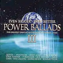 Even Bigger, Even Better Power Ballads III - The Greatest Driving Anthems in the World... Ever! is the 3rd edition in The Greatest Driving Anthems in the World... Ever! series, which is a part of The Best... Album in the World...Ever! brand. Each album includes some of the biggest power ballads since the 1960s, while one album specifically includes Sixties Power Ballads. This album was released November 15, 2005 and includes 36 epic rock love songs. In 2007, the album was also released in an Australian edition under the name of Bigger, Better Power Ballads II. The album includes 56 epic rock love songs as well as a different album cover. In 2009, the album was once again released in an Australian edition under the name of Bigger, Better Power Ballads III. The three CD album includes 57 epic rock love songs as well as a different album cover