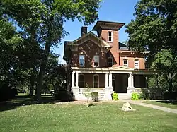Fairbury was laid out on November 10, 1857 by Caleb L. Patton and Octave Chanute.[4] Like most Illinois towns of the 1850s, the original town of Fairbury was centered on a depot ground. It consisted of twenty-six blocks, each divided into fourteen to sixteen lots. There was no central public square, but one was later included in Marsh's addition. The plan used was virtually identical to that at Chatsworth, Illinois, including the street names, and the plan was very similar to that at Gridley and El Paso on the same railroad.[5]
