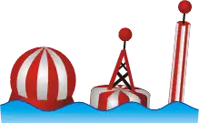 A safe water mark, as defined by the International Association of Lighthouse Authorities, is a sea mark used in maritime pilotage to indicate the end of a channel. They usually imply that open, deep and safe water lies ahead. They are also used to indicate the start and end of a buoyed section of a continuous narrow channel; and a series of them may mark a safe route through shallow areas.[1] It is therefore important to consult appropriate charts to determine their meaning in each location. They are also known as fairway buoys and clear water buoys.