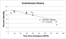 FAM78B has one paralog, FAM78A, and is conserved throughout many species. Orthologs can be found throughout all vertebrates excluding arthropods. FAM78B is also found in several invertebrates including the pacific oyster and liver fluke. FAM78A, it’s paralog, is also found to be conserved in more invertebrates such as the tunicates, worms, and leeches, and make up the distant homologs of FAM78B. The table below contains a list of FAM78B orthologs with percent identity values and time since divergence values relative to the human FAM78B gene or protein.[5]