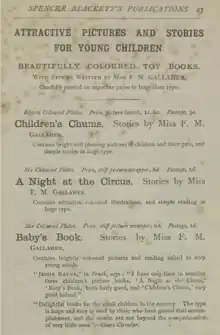 ![]() Advert for F.M.Gallaher's books for children in 1889[1] | |