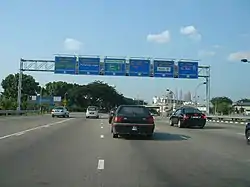 The history of the highway started after the separation of Singapore from Malaysia on 9 August 1965, when the Malaysian government decided to make Port Swettenham (now Port Klang) as Malaysia's new national port as a replacement of Singapore. As a result, the government planned to build a highway connecting Port Klang to Kuala Lumpur by upgrading the former Kuala Lumpur–Klang Highway (Jalan Kuala Lumpur–Klang) (opened to traffic on 14 January 1959)[1] to a full motorway by replacing the existing at-grade intersections with interchanges, making the Federal Highway as Malaysia's first expressway.[2] The Kuala Lumpur–Petaling Jaya Traffic Dispersal Scheme was implemented in 1974 under the surviliance of the Malaysian Public Works Department (JKR). This scheme includes the Kuala Lumpur Inner Ring Road, Kuala Lumpur Middle Ring Road 1, Jalan Syed Putra and Federal Highway Route 2 (Kuala Lumpur–Petaling Jaya). Funded by a loan granted by the World Bank, the upgrade works for the Federal Highway from Subang Airport Interchange to Kuala Lumpur started from 1974 until 1977.[2] The highway was originally a 4-lane limited access highway except for the Petaling Jaya stretch where it became 6-lane highway. However, in 1992 PLUS Expressways, the concession holder of North–South Expressway has upgraded the entire highway to a 6-lane highway with two toll plazas, Batu Tiga and Sungai Rasau. The 6-lane toll highway had begun in operation on 11 May 1993. The highway handles incredible volumes of traffic there is significant congestion at more or less any time of day.[3]