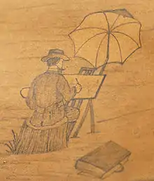 While best known for his hundreds of carefully rendered farmstead pictures, he is also known to have recorded scenes of both the Portage and Stark County Infirmaries, at least one church, railroad stations, a brewery and several rural industries, such as grist mills, potteries, mines and quarries.[4]