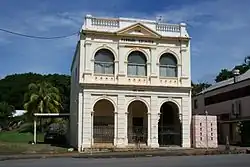This two-storeyed brick building was erected in 1890–91 as the banking premises and manager's residence for the Cooktown branch of the Bank of North Queensland.[1]
