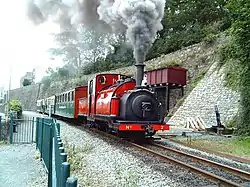 | 2 | The Prince (later Prince) | 1863, delivered 1864[3] | In service | ![]() Overhauled in 1881 with cast iron weights. In 1890, a half-open cab was added. In 1892 a full cab, new boiler and saddle tank were fitted. Prince was withdrawn with a worn out boiler in 1936. In 1955 after preservation, Prince was the first steam locomotive restored. In 1962 new frames and cylinders were fitted but Prince was withdrawn in 1968. In 1980 Prince returned to traffic with superheating and a larger cab fitted and converted to oil firing. In 2013, Prince was again overhauled and converted back to coal firing.[3] |