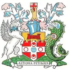 When the borough was incorporated in 1900, the corporation adopted a complicated device bearing six shields for each of the constituent parishes and extra-parochial places from which it was formed.