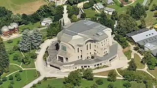The building was designed by Rudolf Steiner and named after Johann Wolfgang von Goethe.[1] It includes two performance halls (1500 seats), gallery and lecture spaces, a library, a bookstore, and administrative spaces for the Anthroposophical Society; neighboring buildings house the society's research and educational facilities. Conferences focusing on themes of general interest or directed toward teachers, farmers, doctors, therapists, and other professionals are held at the center throughout the year.