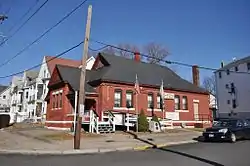 The First Ward Wardroom is a historic meeting hall at 171 Fountain Street in Pawtucket, Rhode Island.[2] It is a single-story red brick building, with a low-pitch gable-over-hipped roof. Basically rectangular, an enclosed entry pavilion projects from the main block. The building, designed by William R. Walker & Son and built in 1886, is one of only three ward halls (structures built by the city and used as polling places and meeting halls) to survive in the state. Since about 1920 it has been the Major Walter G. Gatchell Post No. 306 of the Veterans of Foreign Wars. The building was listed on the National Register of Historic Places in 1983.[1]