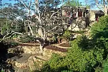 The site was landscaped with dry stone walls, sandstone steps, large natural rock escarpments and dramatic sandstone boulders. The garden had become overgrown over the years and a major re-landscaping was undertaken in 1998. The work removed extensive weed infestations, restored dry stone walls and steps and added additional pathways, a pond, paved area, walls and plantings[11][1]