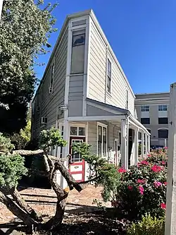 The Flatiron Building is a historic building in the "Old Town" of Novato, California.[1] Built in 1908 by Abraham Yelmorini,[2] a Swiss immigrant and dairy farmer, who also operated a saloon behind it.[3][4] It was designed to attract the attention of passengers arriving at the nearby Novato train station and prevent them from seeing the other saloons in town.[5] After Mr. Yelmorini's saloon ceased operations, a Wells Fargo express office opened in its place.[6] Below street level are several black doors, for purposes unknown.[6] It served as offices of the local newspaper, the Marin County Banner,[2] and in 1922, for the Novato Advance.[7] In 1918, it housed a market;[8] in 1958, a thrift shop;[9][10] in 2007, a gift shop;[2] a home furnishings store; and in 2012, a bookshop.[11]
