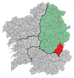 Location of the Comarca of Quiroga, where Folgoso do Courel is located.
