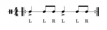 Notation of a typical 4/4 podorythmie rhythm