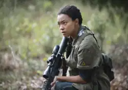 ![]() Sasha leaves the walls of Alexandria to practice shooting with photo frames of dead family members. | |