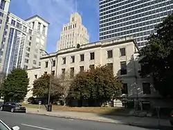Forsyth County Courthouse is a historic county courthouse located at Winston-Salem, Forsyth County, North Carolina. It was built in 1926, and is a three-story, limestone clad, Beaux-Arts style building that incorporates interior elements of the earlier 1896, Romanesque Revival style courthouse. Between 1959 and 1960, additions were built onto the front and rear.[2] It has been converted into private apartments and in 2018, was owned by Winston Courthouse LLC.[3] In front of it for decades was the Confederate Soldiers Monument, which was removed in 2019.