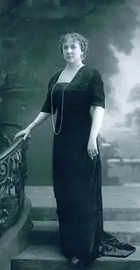 She and her infant grandson both died on the luxury steamboat RMS Lusitania, which was sunk by U-20, a German submarine. En route to Canada for internment next to her predeceased husband, her body and casket were lost at sea as the ship transporting it, the RMS Hesperian, was sunk by the same submarine. In American media, this was referred to as a double jeopardy (double murder).[3]