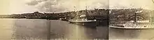 Panoramic photograph of the Seattle waterfront with T. J. Potter paddle steamer on right, 1891