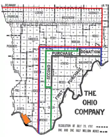 The French Grant (also known as the French-Grant Estates) was a land tract in the Northwest Territory, present day Scioto County, Ohio, that was paid out by the U.S. Congress on March 31, 1795.[1] This was after a group of French colonists were defrauded by the Scioto Company of purchased land grants which rightly were controlled by the Ohio Company of Associates. Not all of the settlers took the grant, some preferring to stay on the East Coast others preferring stay in Gallipolis, Ohio in Gallia County. (Gallia and Gallipolis were named for Gaul, the ancient Latin name of France.)