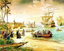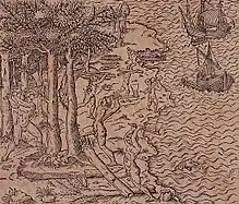 Other reports confirm that the main port frequented by the French in the Captaincy of Rio Grande was the Potengi River, where English ships were also detained. At this anchorage, the necessary repairs were made to the ships and fresh supplies were obtained.[8] According to Friar Vicente do Salvador, in Rio Grande, the "French would trade with the locals, and from there they would also rob the ships coming and going from Portugal, taking not only their farms but also their people, and selling them to the locals so that they could eat them".[9]