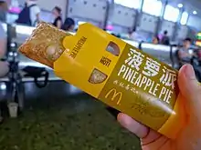 Fast food versions have gained popularity more recently. McDonald's apple pies were introduced on the menu in 1968, but in 1992 they were phased out in favor of a baked pie (claimed to be healthier) in the United States.[3][4] There are some McDonald's restaurants throughout the US and world which still offer the fried pies, including all McDonald's restaurants in the Republic of Ireland, United Kingdom and Japan. Flavors include cherry and apple (US mainland), taro, and haupia, (Hawaii), and green bean or red bean (China). The Burger King chain also offers fried pies on its menu, in apple and "wild berry" flavors. Whataburger and Popeyes also offer fried pies.