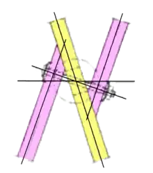 In the Zollinger construction system, short planks are arranged in such a way that two planks meet in the middle of a vertically running plank. A typical connection details consists of a bolt that goes through a slotted hole in the middle plank, with toothed washers being placed between the planks. Typical dimensions for the planks used in roofs constructed in the interwar period are 3 cm × 20 cm, with lengths between 2 and 2.5 m.[6][7]
