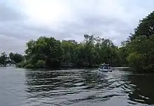 The island is named after a mill on the bank here. Frog Mill Ait and the adjacent Black Boy Island presented a problem to navigation because the towpath was on the other side of the island from the main navigation channel. Hence tow lines had to sweep over the islands, often with the result that barges were pulled onto the shore.[1]