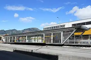 The simple station Fucha is part of the TransMilenio mass-transit system of Bogotá, Colombia, opened in the year 2000.