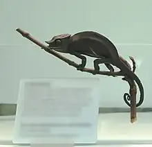 | Taxidermied Furcifer bifidus (synonym: Chameleo bifidus). | |