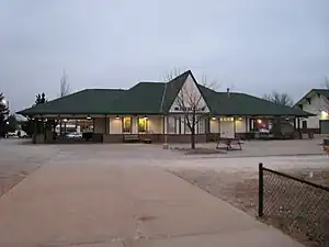 Work began on a third structure soon after, and the building opened the following year. The third depot was 16,000 square feet, of reddish-brown brick and white limestone trim. Extra buildings would be added for freight and restaurants at each end of the main station house.[13] Beginning in the mid-1930s, the CB&Q introduced their famous Zephyr trains this depot became a station on several of the trains, including the Nebraska Zephyr, Ak-Sar-Ben Zephyr and Denver Zephyr. It was also a station on the Exposition Flyer, operated jointly between the CB&Q, Denver & Rio Grande Western and Western Pacific railroads between Chicago and Oakland, a train which would later be replaced by the famed California Zephyr. The depot eventually would serve Burlington Northern trains between 1970 and 1971 and later Amtrak trains post 1971. By the early 1980s, however, Burlington Northern officials began to question the necessity and practicality of having such a large depot in the face of declining passenger service. Following a study that stated that it would cost $1.5 million to renovate the building, the building was demolished overnight on May 13, 1983.[13]