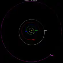 Gaspra orbits the Sun at an average distance of about 2.21 astronomical units. Gaspra completes one orbit around the Sun in 3.29 years.[1]
