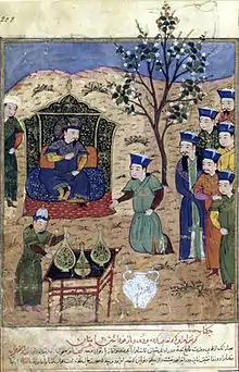 ![]() Gaykhatu enthroned, 15th century miniature | |