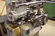 Hobbing machines, also known as hobbers, come in many sizes to produce different sizes of gears. Tiny instrument gears are produced on small table-top machines, while large-diameter marine gears are produced on large industrial machines. A hobbing machine typically consists of a chuck and tailstock to hold the workpiece, a spindle to mount the hob, and a drive motor.[6]