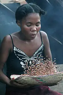 Rich and middle-class Malagasy women spend much time cooking, and may work in cassava, rice, and maize production. Poorer women often work in rice production together with male family members, although they most commonly work with dry-field crops. Outside of the harvesting season, they may produce and sell other items to earn income for their families.[17]