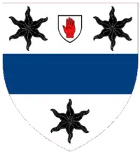 Argent a fess Azure between three estoiles of six points wavy Sable.
